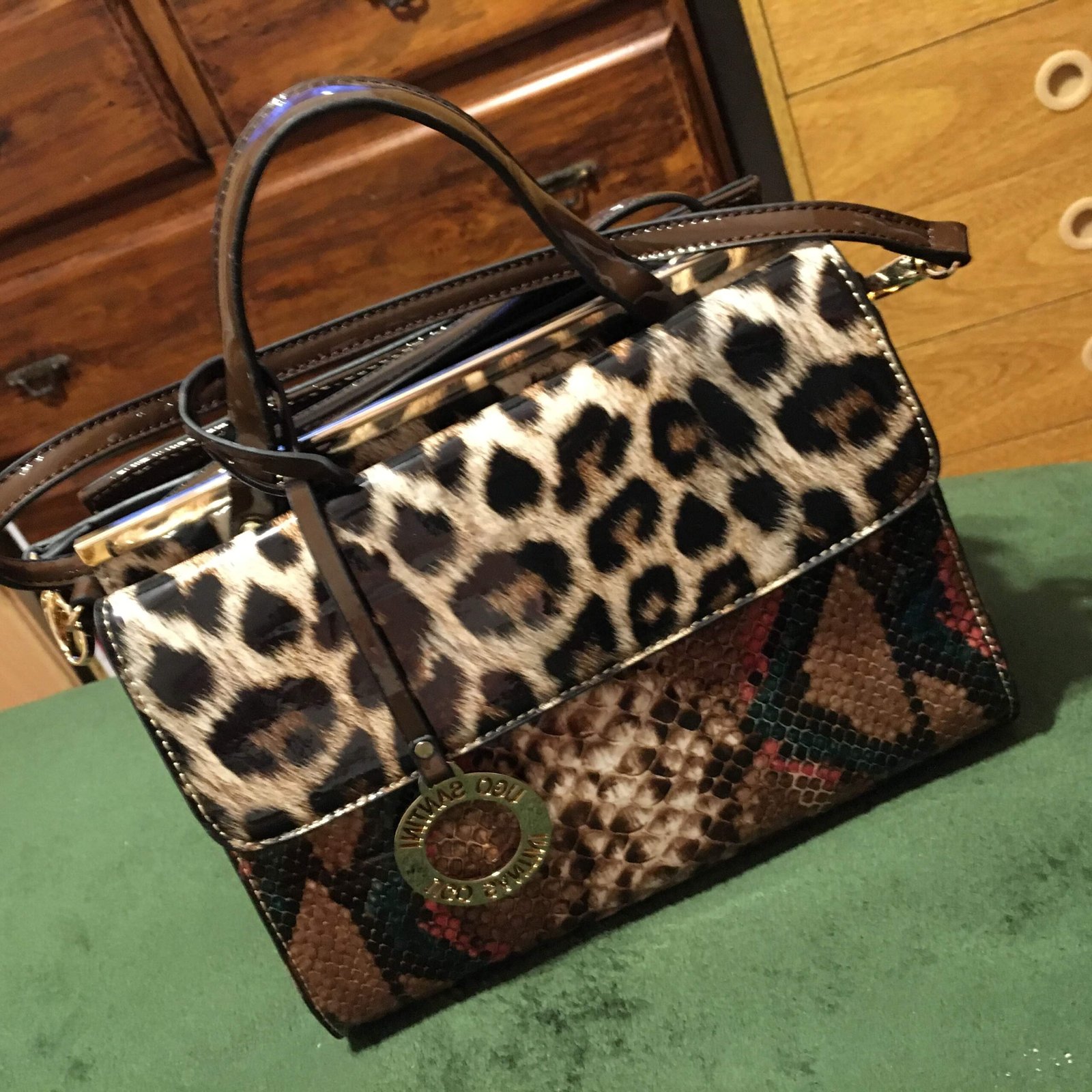 Es una cartera animal print , conbuena capacidada de guardado, con opcion de correas de alargue .